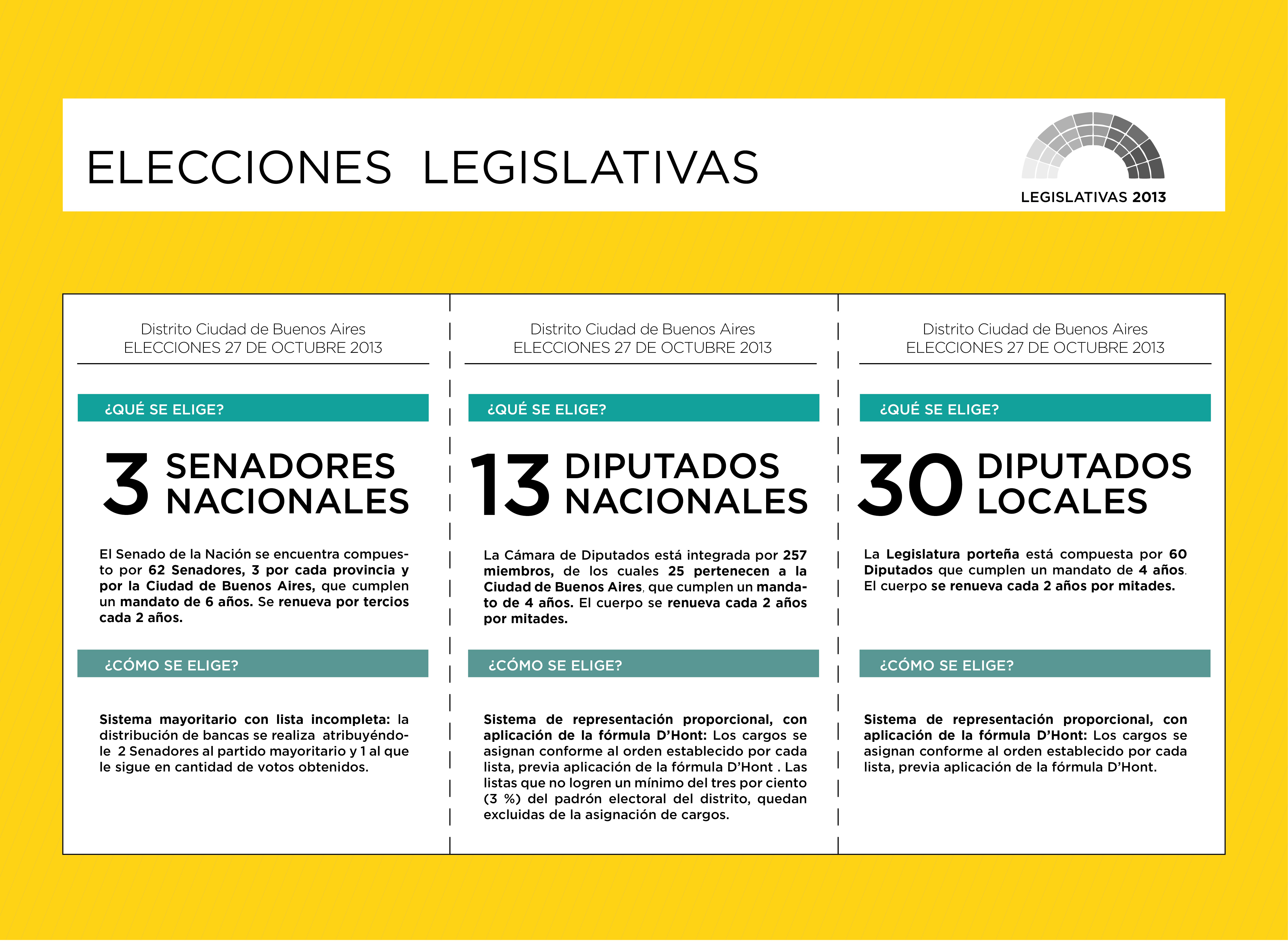El Jefe de Gobierno convocó al electorado de la Ciudad a elegir 30 Diputados para integrar el Poder Legislativo porteño el próximo 27 de octubre. A partir del Decreto Nº 257/2013, las elecciones locales se realizarán en forma conjunta y simultánea con las elecciones nacionales.