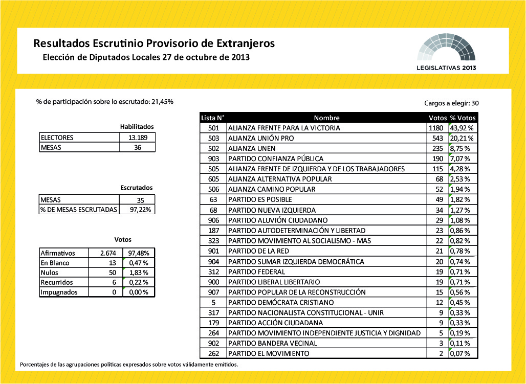 El pasado 27 de octubre 13.189 electores extranjeros residentes en la Ciudad estuvieron habilitados para elegir 30 Diputados Locales