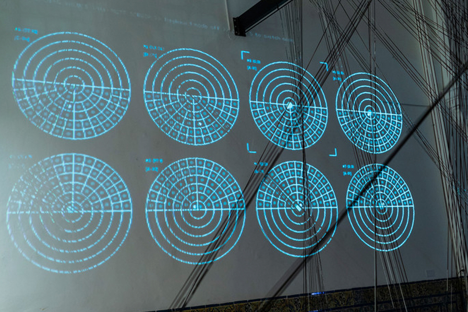 La instantaneidad, la simultaneidad y las acciones del público alteran visual y sonoramente la percepción de la obra. El diálogo entre los espacios, las líneas que los atraviesan y la conjunción de los sonidos sugieren que estar aquí y ahora necesita de otro aquí y ahora. Los fragmentos de la inmediatez se conjuran en la simultaneidad de la distancia. De las líneas en tensión surgen espacios entre, donde se articulan fuerzas, voluntades, deseos. La percepción del espectador es puesta a prueba a través del diálogo entre dibujo y sonido en una muestra donde lo cotidiano interviene el espacio.