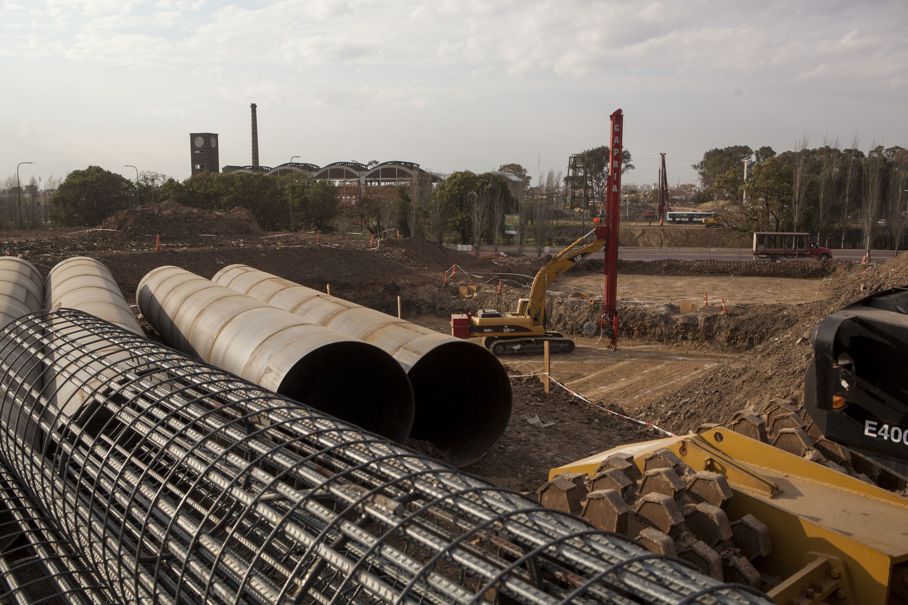 - Excavación en la rotonda de la zona de Lanús