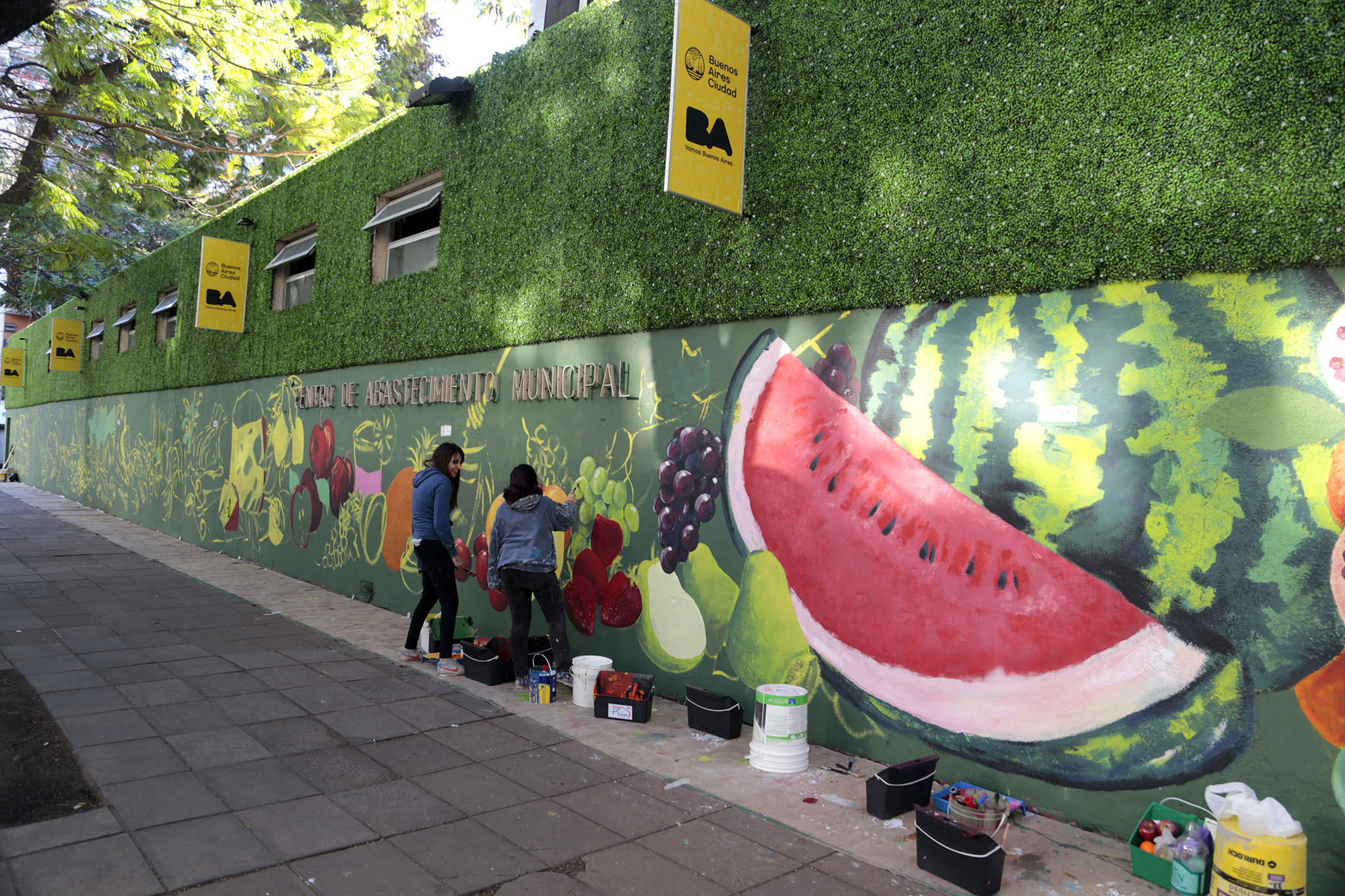 La mejora general del espacio se puede percibir antes de ingresar al predio, gracias a la intervención artística que se realizó sobre su principal muro exterior- el que está ubicado sobre la calle Juramento-, que ilustra la actividad que se desarrolla ahí dentro.