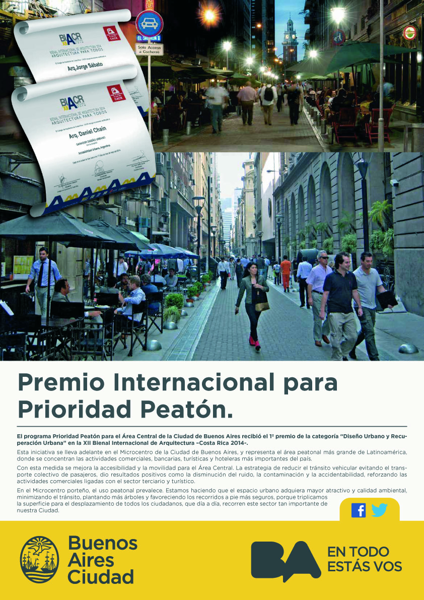 La Ciudad ganó la XII Bienal Internacional de Arquitectura Costa Rica 2014 en la categoría Diseño Urbano y Recuperación Urbana gracias al proyecto Accesibilidad Urbana que viene desarrollando en el Área Central y en el barrio de la Boca.
