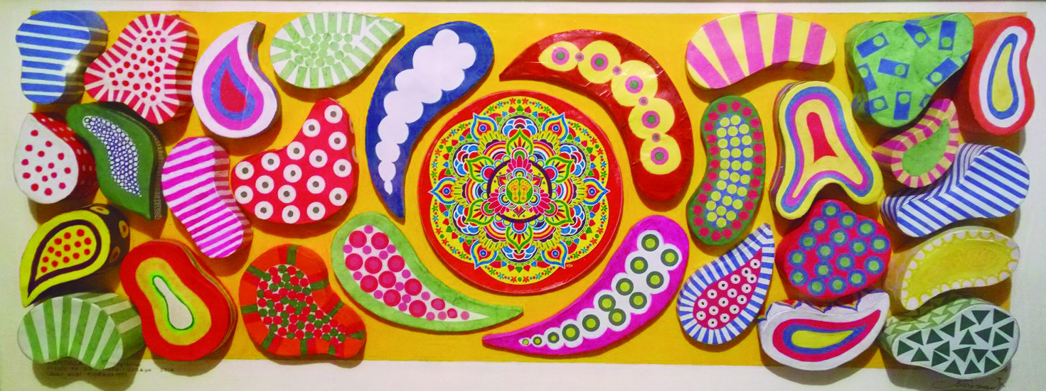 ¡Qué extraño nombre para una muestra!... Pero ocurre que Dina viene de la abreviatura de Dinamogramas donde toda mi obra de raíz cinética busca crear en la visión del espectador una vibración óptica. Lo de Papiers indica que toda esta obra son gofrados y dibujos en 3D realizados con cartulinas, tinta y grafito. Indudablemente no son el grabado tradicional y menos, los dibujos que trato de investigar humildemente sobre nuevas formas de expresión. CAF