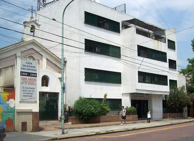 Erigida por la orden salesiana para conmemorar las bodas de plata de su misión en Buenos Aires, la basílica de San Carlos Borromeo y María Auxiliadora se eleva por encima del enclave de escuelas de la misma orden entre los cuales se encuentran María Auxiliadora y San Francisco de Sales.