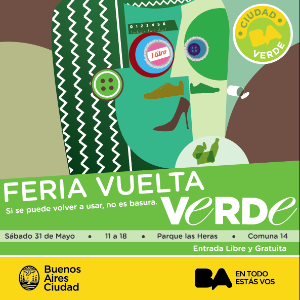 El sábado 31 de mayo de 11 a 18 horas se llevará a cabo en Plaza las Heras la feria "Vuelta Verde", el primer encuentro de reutilización creativa. Se trata de una jornada para descubrir las distintas posibilidades de reutilización de los desechos cotidianos.
