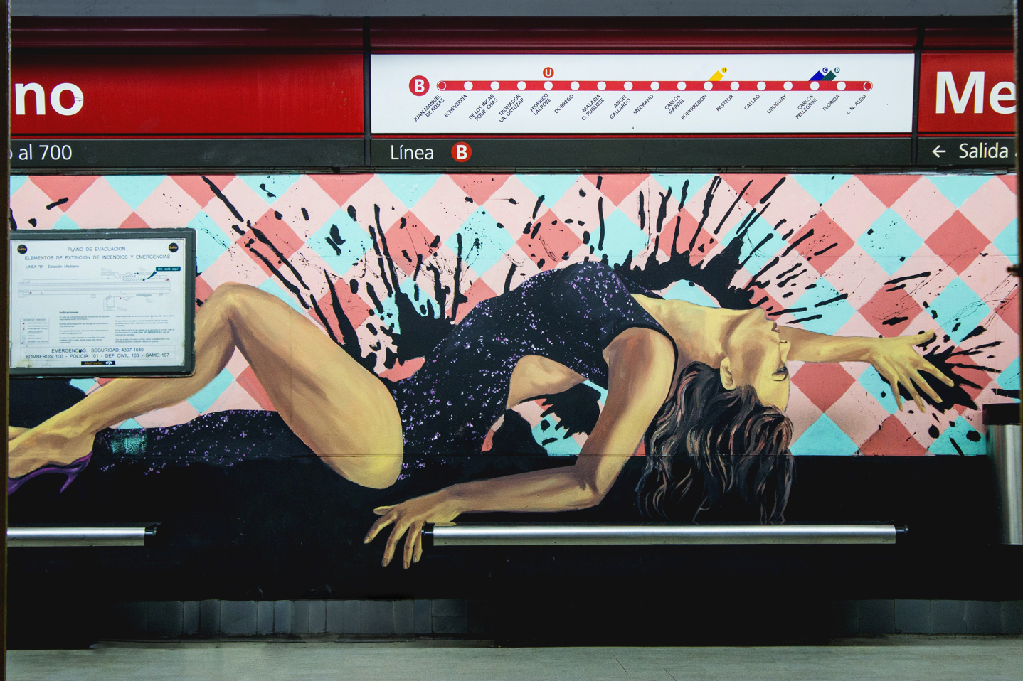 El concepto que vas a poder apreciar en los andenes de la estación, es el encuentro por medio de la danza, representado por las siluetas de parejas bailando distintos ritmos. Con el humor y la fantasía como disparadores, los artistas se inspiraron en el ritmo característico de la Ciudad de Buenos Aires, el tango, además del jazz, el rock y otros.