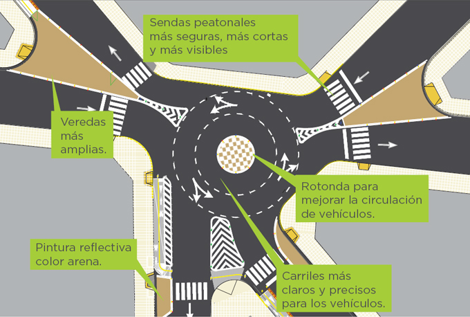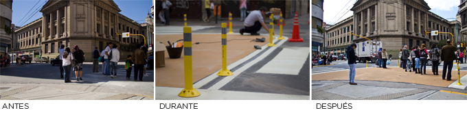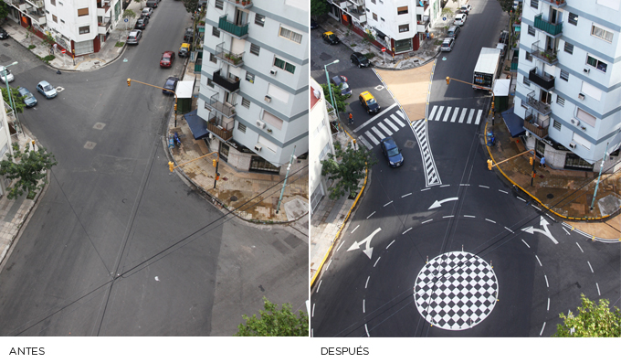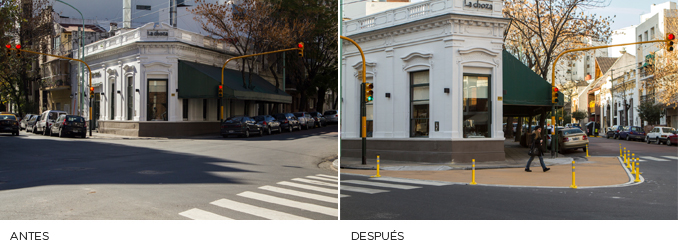 Es por eso que para lograr una mejor interpretación de estos cruces, se realizaron intervenciones con un reordenamiento del espacio público basado en la extensión de las áreas peatonales y el encausamiento de los flujos de tránsito.