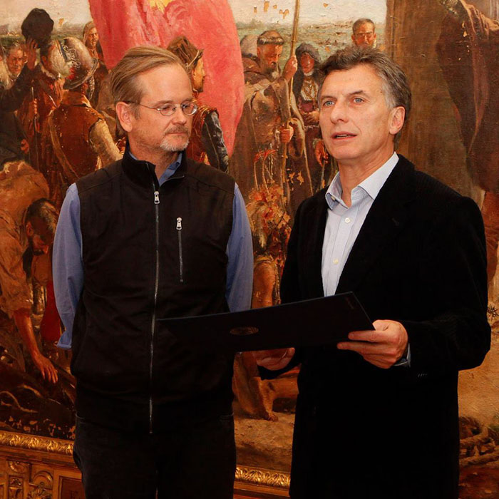 Macri junto a Lawrence Lessig, a quien declaró Huésped de Honor. Foto: GCBA.