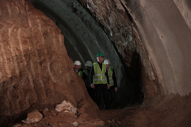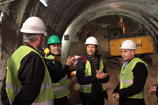 El jefe de Gobierno presenció cómo trabajaron dos máquinas excavadoras para remover los últimos bloques de tierra y unir los dos frentes del túnel, que dejaron a la vista el espacio que va a ocupar la estación Las Heras, donde ya finalizaron los trabajos de excavación y se está realizando el armado del revestimiendo definitivo de hormigón.