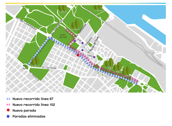 En este marco las paradas ubicadas en Av. Casares 3591, Gelly 3512, Castex 3416 y San Martín de Tours 2836 se trasladarán a la Av. del Libertador y Salguero.