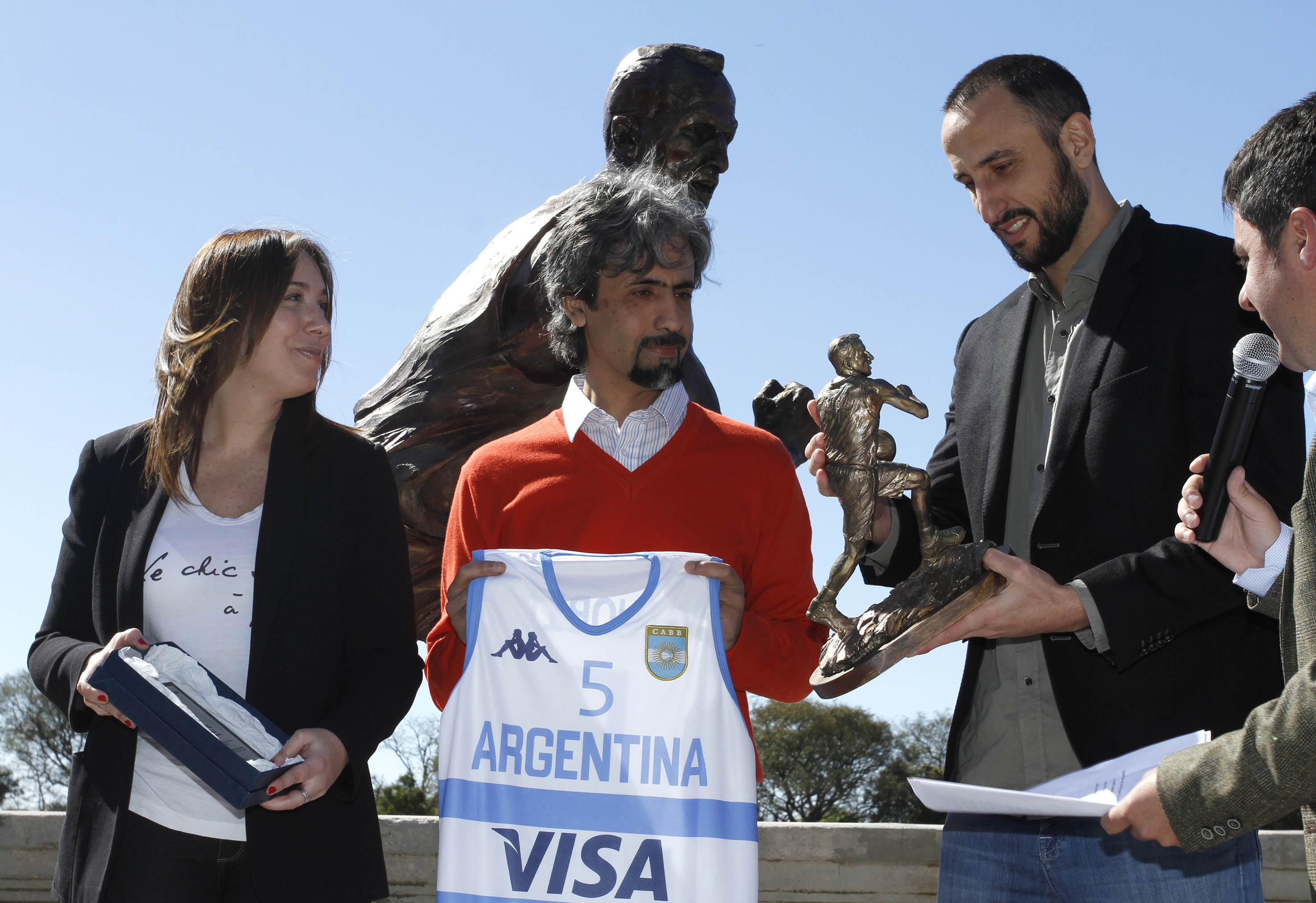 Antes de descubrir la escultura dedicada al jugador de San Antonio Spurs de la NBA, realizada por el artista Carlos Benavídez, Vidal se refirió a los logros que llevaron a Ginóbili a ser considerado el jugador argentino de básquet más importante de todos los tiempos.