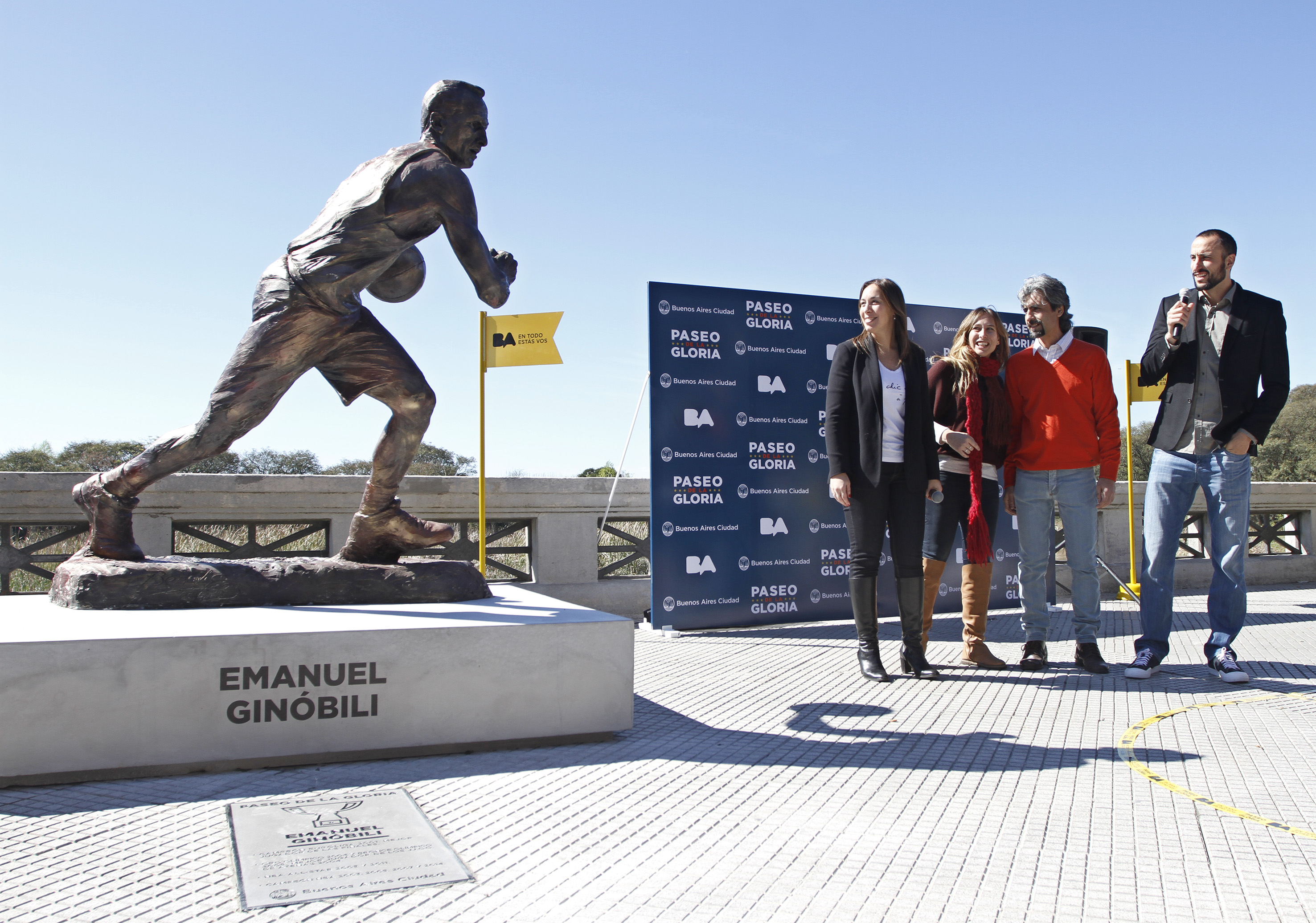 María Eugenia Vidal y el basquetbolista Emanuel "Manu" Ginóbili inauguraron, el viernes 29 de agosto, en Costanera Sur, la escultura en homenaje al deportista bahiense reconocido mundialmente.