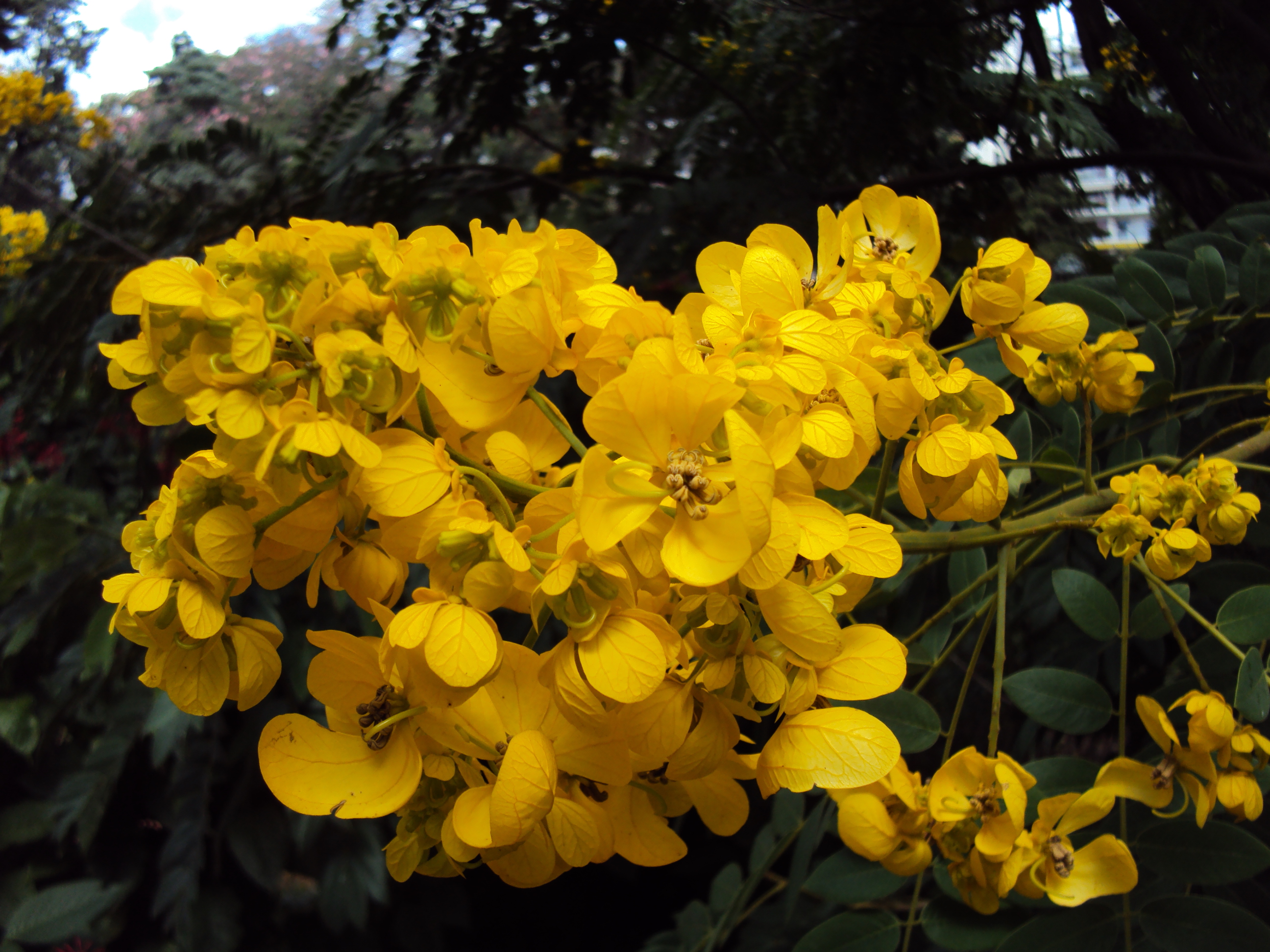 De la familia Leguminosae (subfamilia Caesalpinioideae), es un árbol de mediano porte, corteza gris lisa, copa extendida. Hojas alternas, compuestas (pinnadas), con 7 a 15 pares de foliolos oblongos, con ápice puntiagudo, envés pubescente. Florece durante el verano en grandes panículas de más de 30 cm de largo, con flores amarillas de cinco pétalos desiguales, perfumadas, con siete estambres fértiles. Si bien florece entre febrero y mayo instalado en latitud de la región pampeana, en su área de origen (el NO) la mayor floración ocurre a mediados de febrero, cuando se celebra el carnaval, de ahí uno de sus nombres comunes: carnaval, y su nombre científico anterior: Cassia carnaval. El fruto es una vaina algo curvada, más o menos cilíndrica, negruzca, dividida interiormente por tabiques en compartimentos; aromática, con numerosas semillas comprimidas marrones.