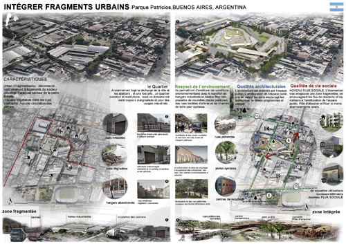 El proyecto “INTEGRAR FRAGMENTOS URBANOS” se trata de un Campus Universitario inserto el tejido urbano de la Ciudad de Buenos Aires al sur del barrio Parque Patricios, en una zona degradada por la industria y los galpones de logística y olvidada por los porteños, pero con fuertes promesas de cambio desde la puesta en marcha del proyecto de alojar allí el Polo Tecnológico. La propuesta pretende ser un nexo entre la zona residencial y la zona industrial que hoy están inconexas y degradadas. Pero teniendo en cuenta a su vez, el proceso de cambio por el que atraviesa el barrio, buscando abrir el diálogo a través del espacio público, anticipándose al crecimiento que habrá en la zona las demandas de los nuevos flujos sociales en cuanto a equipamiento y transporte.