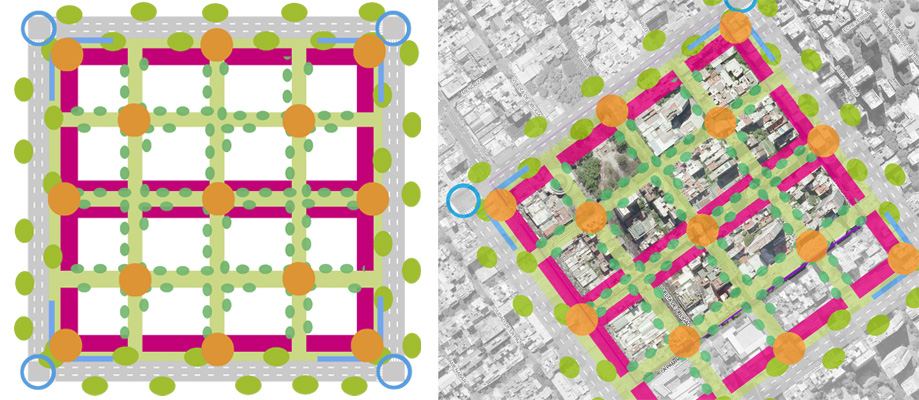 La creación de Unidades de Sustentabilidad Básica es una política desarrollada a partir de las directrices del Modelo Territorial, que integra al urbanismo y la planificación de la movilidad con un objetivo principal: limitar la presencia del vehículo privado en el espacio público. Recuperando parte del espacio dedicado a las vías de circulación motorizada, es posible ganar ámbitos de integración social que, además, están pensados para generar el soporte físico de una red interconectada de espacios verdes.
