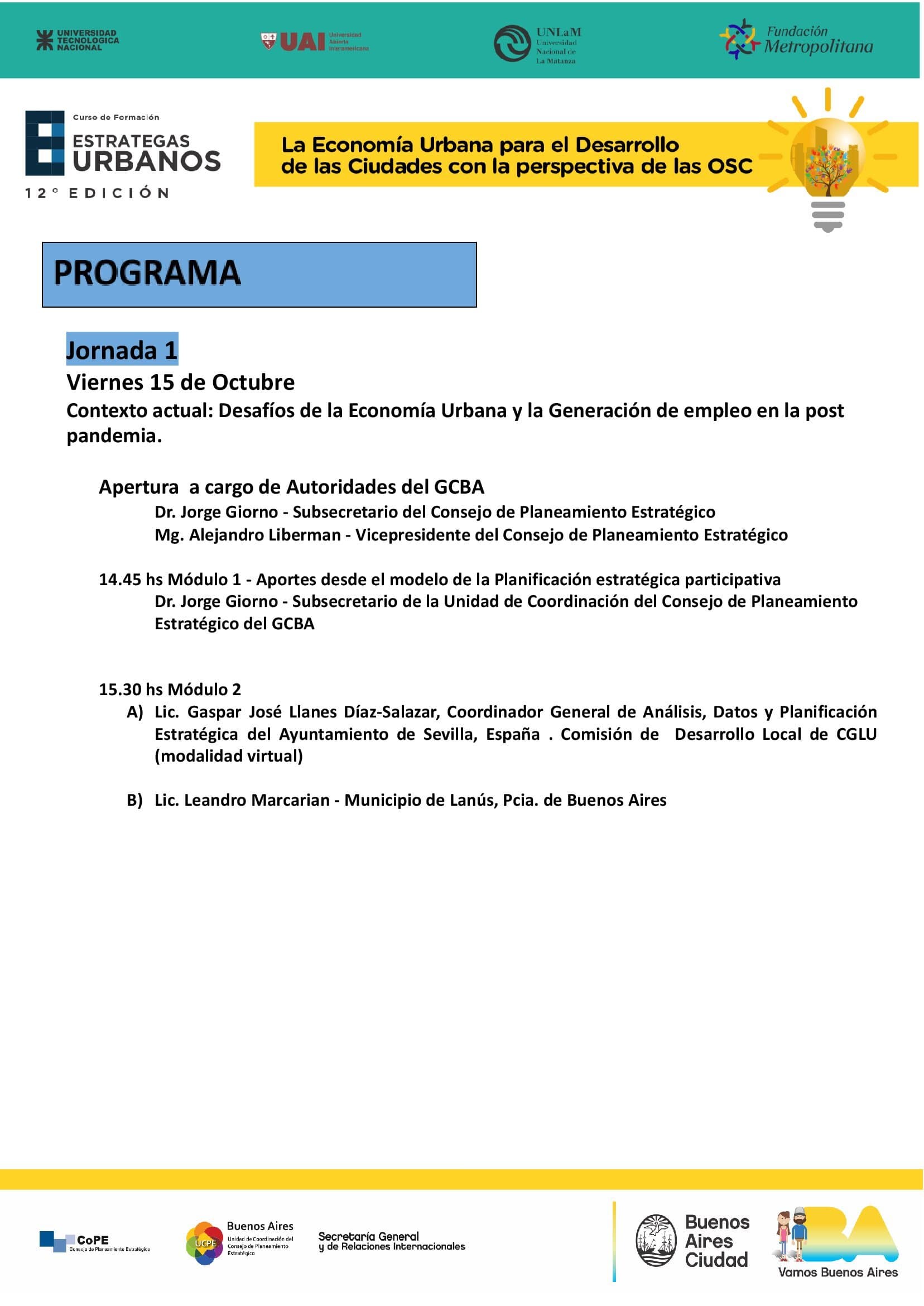 Curso de Formación Estrategas Urbanos: Hacia un Plan Estratégico de Desarrollo Económico, Social y Productivo del Área Metropolitana