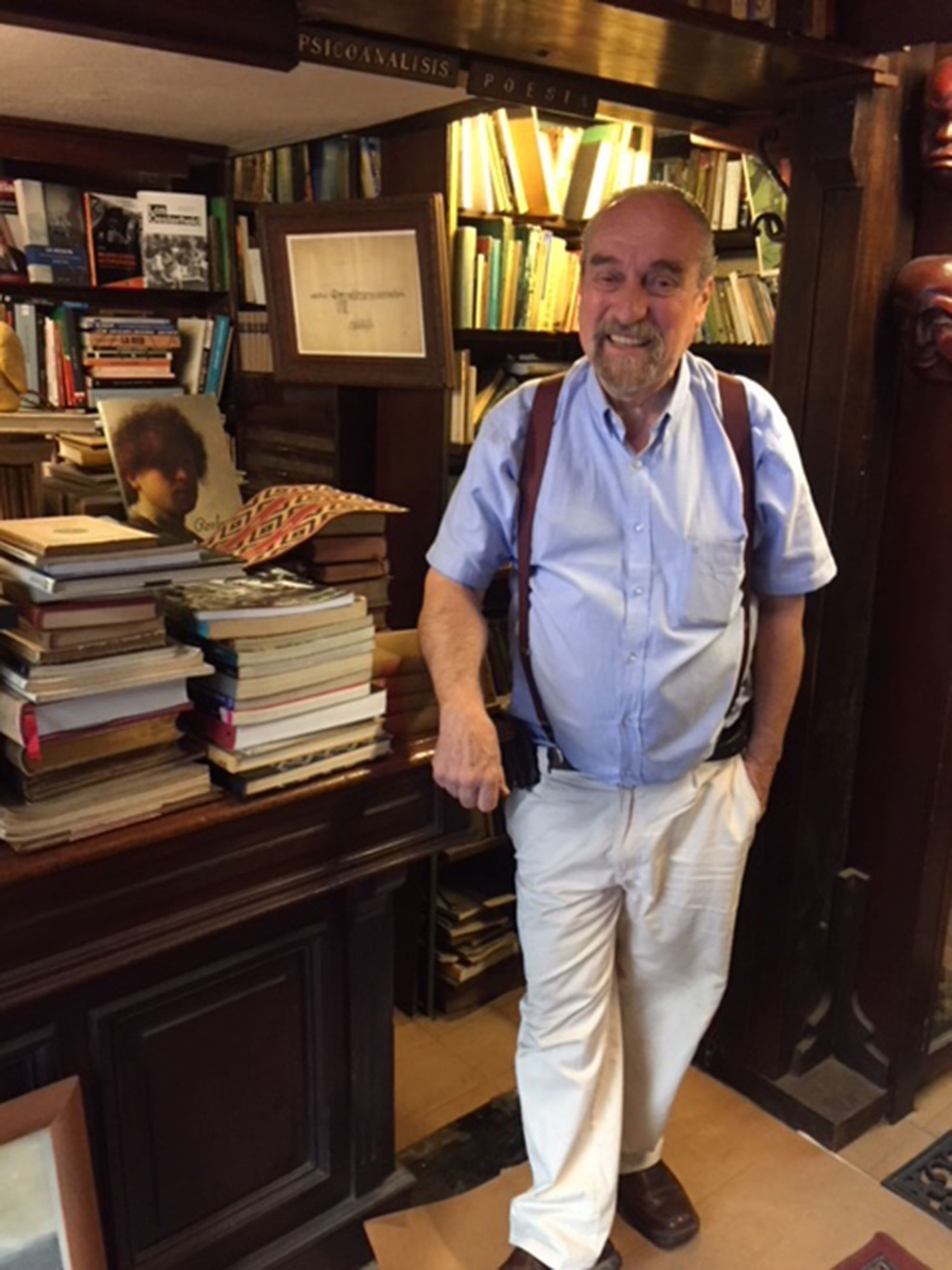 Bibliófilo, escritor, cineasta y artista plástico, cada uno de los rincones de la librería tiene su sello, en cada libro elegido, en los entrepisos de madera y los muebles que construyó con sus manos, en la remodelación y decoración del local, en las encuadernaciones y en el trabajo artesanal de restauración de colecciones de libros.