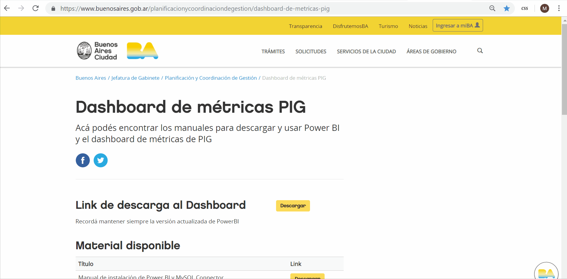 Para ver los reportes generados, deberás descargar la herramienta y el dashboard desde el portal de métricas de PIG, donde encontrarás también todos los manuales e instructivos generados.