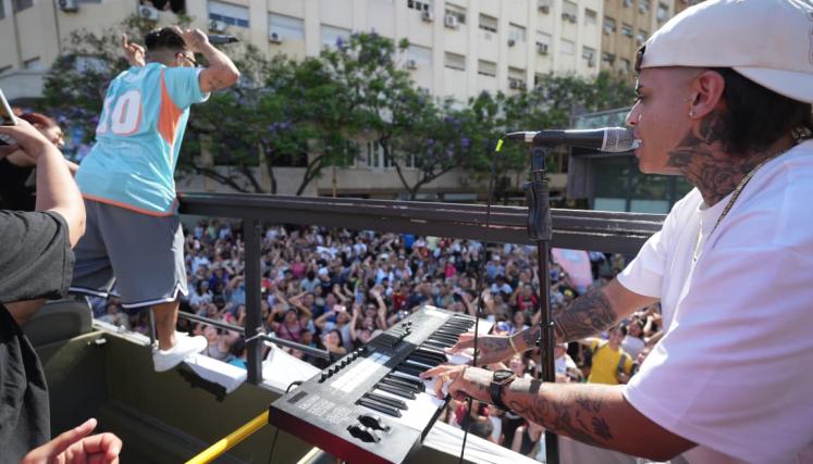 Con el Obelisco de escenario, vecinos y turistas pudieron disfrutar de la música del dúo que une cumbia, fútbol y emoción argentina.