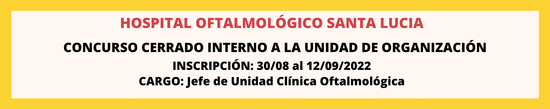 Buenos Aires Hospital de Oftalmología Santa Lucía Concursos Cerrados Internos en la Unidad de Organización Compartir en redes DISPOSICIÓN TEMAS EVALUACIÓN ORDEN DE MÉRITO DISPOSICIÓN EVALUACIÓN ORDEN DE MÉRITO DISPOSICIÓN ORDEN DE MERITO Cerrar ventana Imagen 1/2 Imagen 2/2 Anterior Siguiente DI-2023-94-GCABA-HSL Profesión: Médico Especialidad: Oftalmología Fecha de publicación: 7 al 18/08/2023 Fecha de inscripción: 22/08 al 04/09/2023 DI-2023-94-GCABA-HSL.pdf Descargar EXAMEN-2023-94-GCABA-HSL.pdf Descargar ORDEN DE MÉRITO-2023-94-GCABA-HSL.pdf Descargar