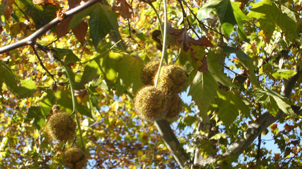 | Descripción: | Árbol de gran tamaño, de forma globosa y amplia cuando conducido por poda en vivero, y piramidal cuando crece libremente, de ramas erguidas y tronco desnudo, recto, corpulento, cilíndrico, fuste alto. Su corteza es gris verdosa, con escamas que se desprenden como dejando en el tronco y en las ramas gruesas, manchas amarillentas. Su follaje está constituido por hojas simples, alternas, palmadas, de color verde claro, con el envés densamente pubescente cuando joven lo que le da una tonalidad gris. Sus flores, poco atractivas se presentan en Inflorescencias s globosas, de color verdoso en la primavera temprana. Su fruto es una infrutescencia globosa, péndula, de 3,5 cm. de diámetro, generalmente de a par, primero verde, luego pardo y finalmente pajizo. Es de crecimiento rápido, rústico y longevo. Resistente a la poda fuerte. Soporta la contaminación atmosférica. |