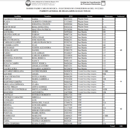 Buenos Aires Elecciones de Delegados/as en el Barrio Mugica Elecciones de Delegados/as en el Barrio Mugica ¡Delegados/as Electos/as! Delegados/as: tareas y responsabilidades. Padrón general de Delegados/as ¡Consejeros/as Electos/as! Documentos oficiales Cronograma electoral Información de las manzanas Padrón general de Delegados/as En esta sección encontrarás toda la nómina actualizada de todos los delegados y delegadas del Barrio Mugica. Compartir en redes Cerrar ventana Imagen 1/2 Imagen 2/2 Anterior Siguiente