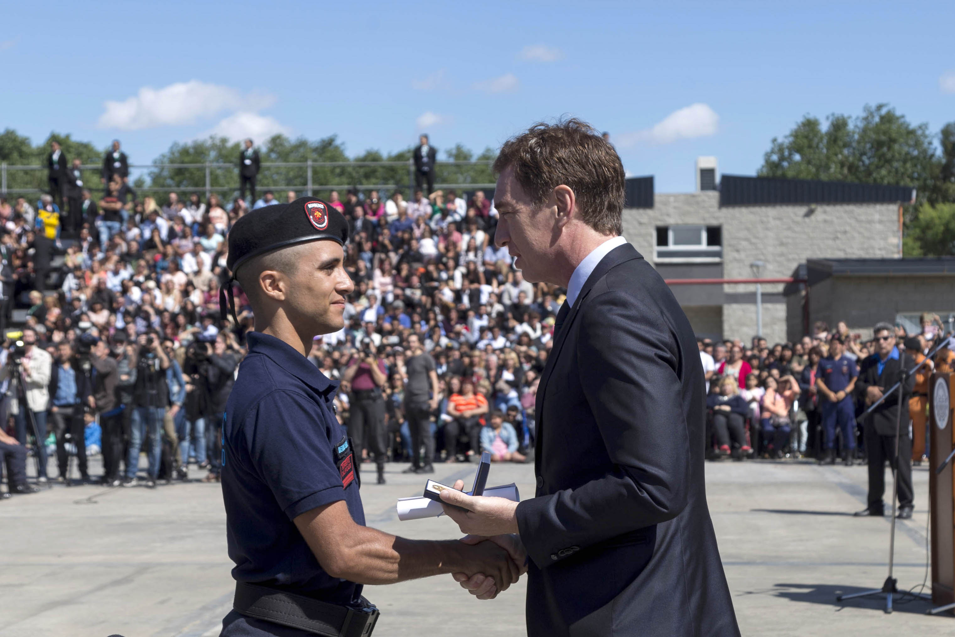 Las autoridades de Gobierno y del ISSP entregaron 20 premios y diplomas a los cadetes más destacados. A su vez, el director del Instituto, Gabriel Unrein, tomó juramento a los nuevos oficiales.
