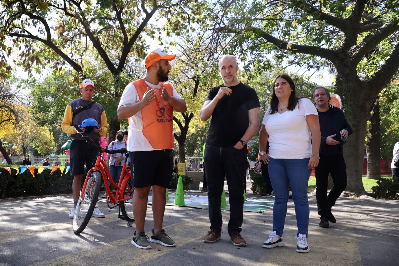A continuación, acompañado de la secretaria de Transporte y Obras Públicas, Manuela López Menéndez, presenció una nueva edición del Programa Soltate, que tiene el objetivo de enseñarle a los vecinos a andar en bicicleta. Inicialmente estaba destinado a los más chicos, y ahora se renovó con jornadas para todas las edades. En sus dos primeras ediciones con esta nueva modalidad participaron más de 160 adultos.