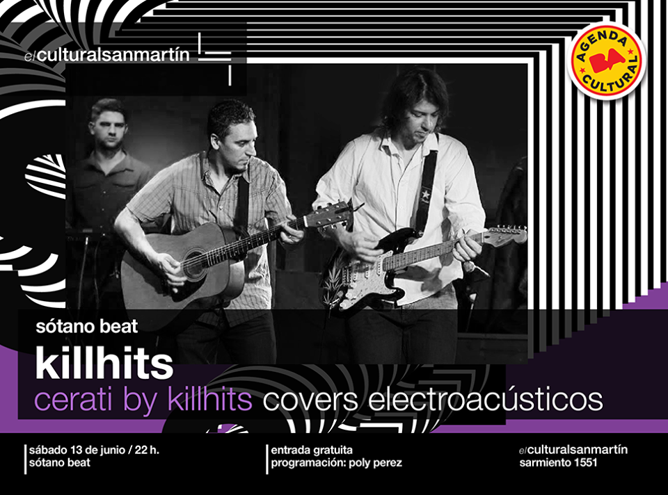 El sábado 13 de junio a las 22 h. se presentará Killhits, con el espectáculo Cerati by Killhits, en el Cultural San Martín (Sarmiento 1551), en el marco del ciclo Sótano Beat. Entrada gratuita.