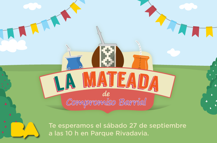 Este sábado 27 de septiembre de 10 a 14 h. en Parque Rivadavia (Av. Rivadavia 4800) se celebra la primer Mateada Barrial. Habrá juegos de kermesse para toda la familia, sorteos y shows en vivo de la mano de Agrupación Coral Porteña del programa Coros Porteños, Cesar Pavón y Carlos Denis. Además, 25 organizaciones que participan de Compromiso Barrial compartirán con los vecinos las actividades que realizan en sus barrios junto a sus integrantes y beneficiarios. Por otro lado, BA solidaria continúa con su campaña de recolección de alimentos y podrás sumarte con un alimento no perecedero para ayudar a quienes más lo necesitan.