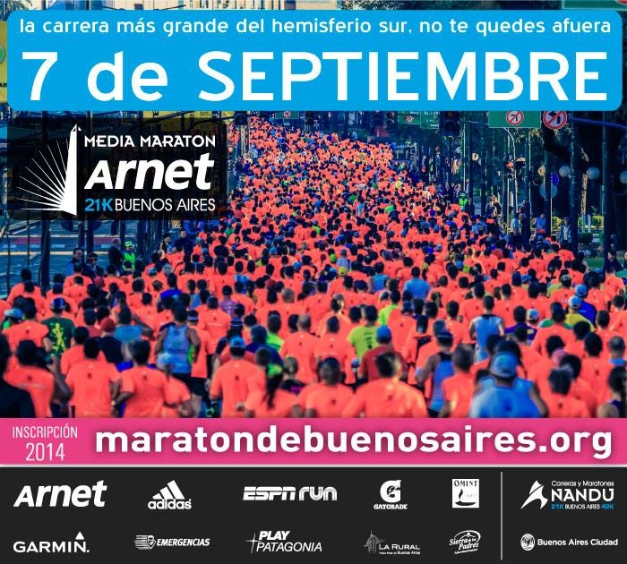La expo-maratón 21K Arnet de Buenos Aires, donde todos los inscriptos podrán retirar su kit de competencia, se llevará a cabo el viernes 5 de 11 a 21 horas y el sábado 6 de septiembre, de 9 a 19 horas en el Pabellón Ocre del Predio Ferial de La Rural con entrada por la Avenida Santa Fe 4201. La entrada será libre y gratuita. Durante la muestra habrá distintos stands vinculados al running y se realizaran distintas charlas. Para inscripciones e informes de los 21k Arnet de Buenos Aires y para la Maratón 42K de Buenos Aires - la más importante en cantidad de inscriptos de Sudamérica -, ingresar a www.maratondebuenosaires.org.