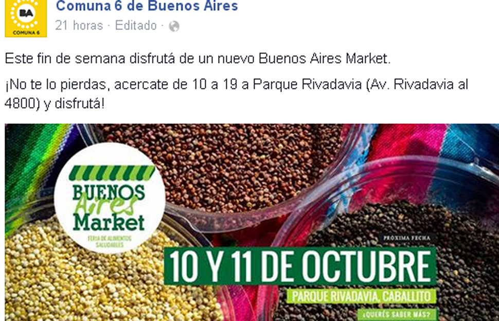 Cada vez son más los foodies que no se contentan con los envasados industriales del supermercado y buscan abastecerse de alimentos naturales, orgánicos, artesanales y gourmet con el objetivo de llevar una dieta más saludable y variada. Para que nadie se quede afuera de la movida, Buenos Aires Market celebra la segunda edición del mes, esta vez el próximo fin de semana largo: el sábado 10 y el domingo 11 de octubre, entre las 10 y las 18 horas, la feria se instalará en el Parque Rivadavia, Caballito, con ingreso por la Av. Rivadavia al 4800.