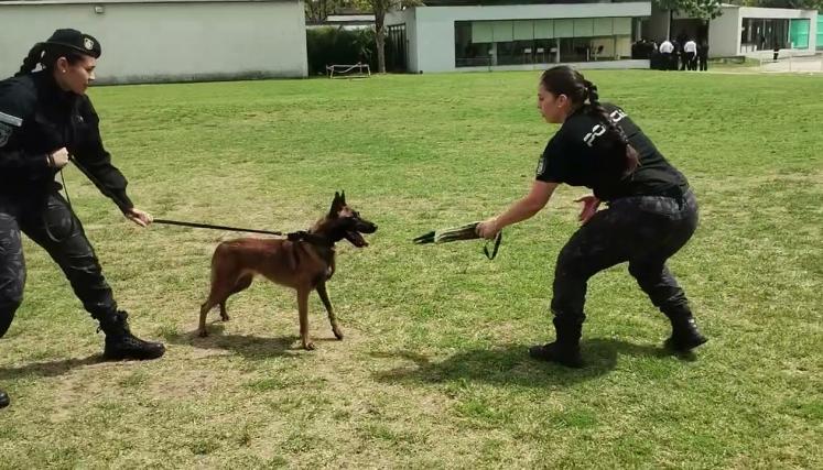 La instructora de la Escuela Guía de Canes del ISSP, oficial primero Daniela Giménez, explicó que el curso “incorpora diferentes escenarios para que los canes puedan desarrollar distintas actividades, ya sea en escenarios colapsados o en grandes áreas, para buscar personas desaparecidas”.