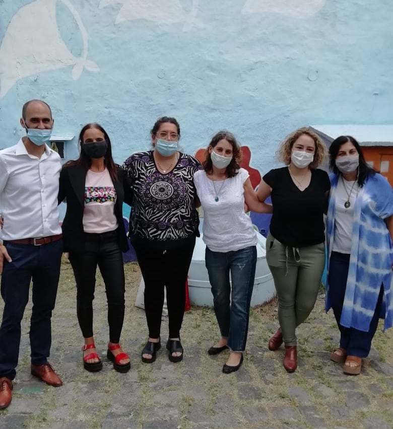 La Residencia Socioeducativa Almafuerte fue la sede para que la Dra. Marisa Braylan, Directora del Centro de Estudios Sociales de la DAIA; Carla Ramirez, Trabajadora Social; Daniela Plotkin y Miriam Barbero, psicólogas y Carlos Corrales y Regina Piñeto, funcionarios del CDNNYA compartieran una tarde con los adolescentes alojados en las mismas.