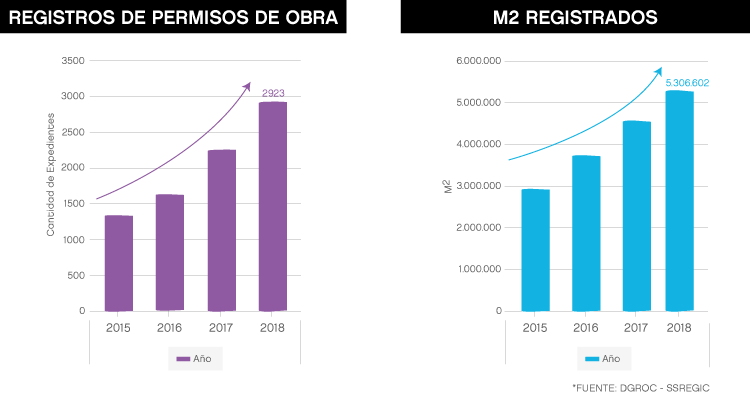 Este crecimiento se enmarca en una tendencia al alza, que se plasma anualmente desde 2015, tanto en la cantidad de registros otorgados como en la cantidad de m2 que esos permisos representan.
