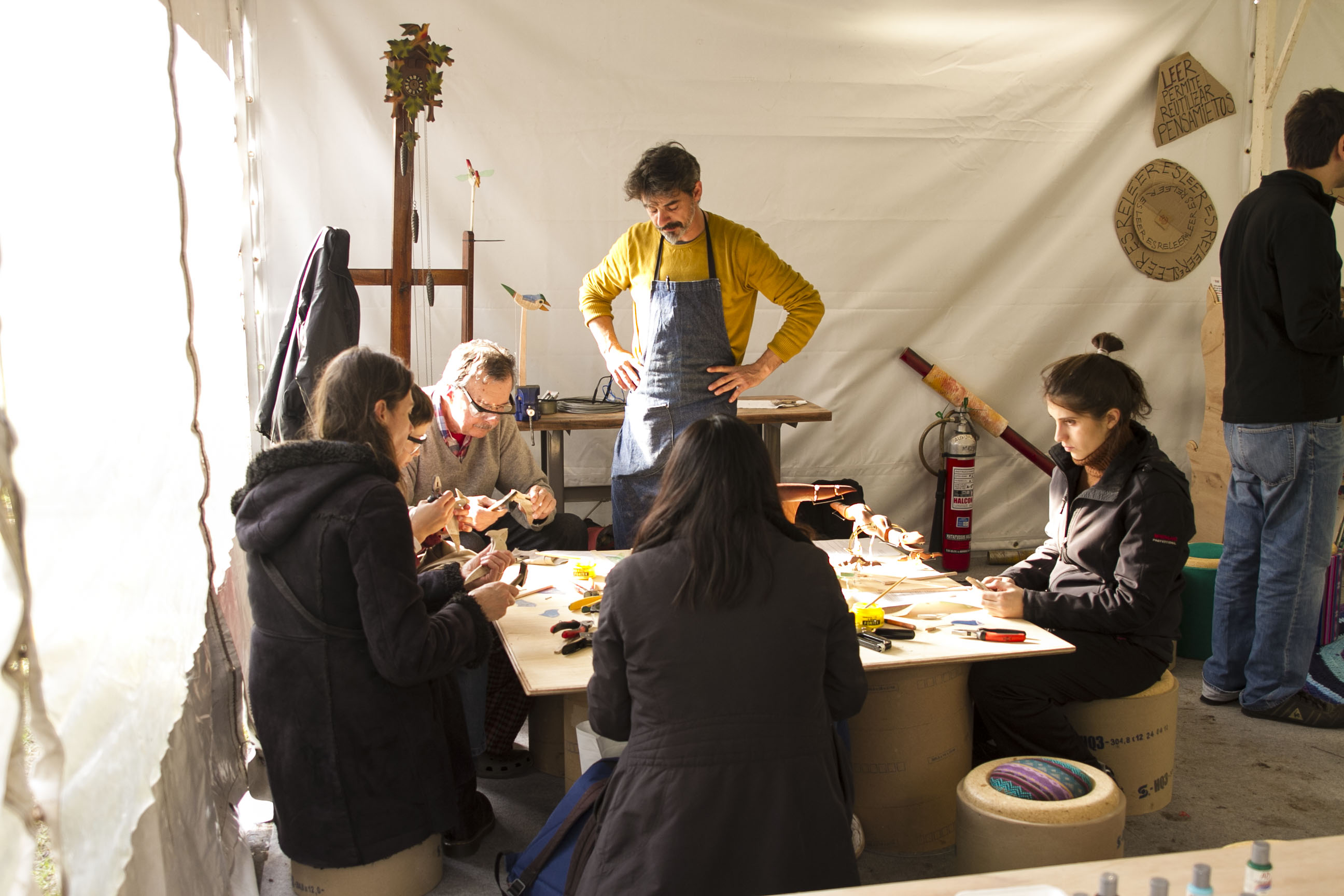 Entre los muchos talleres se destacaron uno de armado de cohetes con botellas Pet y Telgopor, que luego fueron lanzados al cielo mediante un sistema de compresión de aire; un taller de Stop Motion y otro de soldadura para crear esculturas con hierros en desuso.