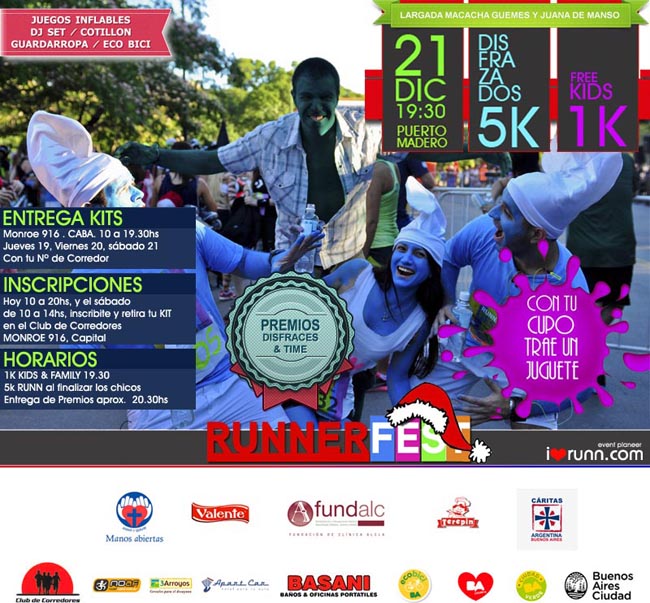 Para correr es condición venir disfrazado. El día de la carrera se le pide a los asistentes que lleven un juguete para donar a través de BA Solidaria a Caritas, Manos Abiertas y Fundalc el 24 de diciembre. La intención es juntar 10 mil juguetes.