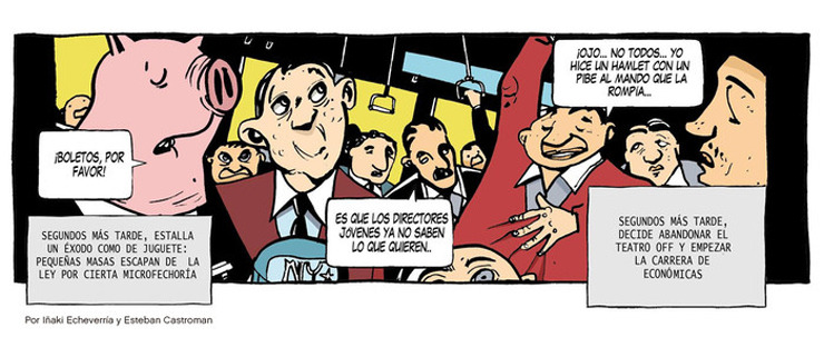 Por un lado, Historias en vivo es una actividad performática a cargo de Iñaki Echeverría y Esteban Castromán, en la que los autores van creando en vivo una narración literaria acompañada de ilustraciones cuyo resultado final será una historieta de la que han participado los vecinos del barrio de Palermo. La intervención comienza con una hoja en blanco de 10 metros de largo por 1 metro de alto, montada en el espacio público, sobre la cual los artistas vuelcan la secuencia de textos e ilustraciones, en un formato donde las viñetas características de la historieta conviven con otros géneros de la ficción gráfica.