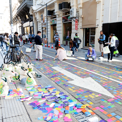 Hubo una simpática movida en las calles San Martín y Bartolomé Mitre, donde se colocaron stickers, de variadas formas: flores, fichas de dominó y ladrillos psicodélicos, entre otros. También hubo mensajes específicos sobre las metas que quiere alcanzar el gobierno porteño.