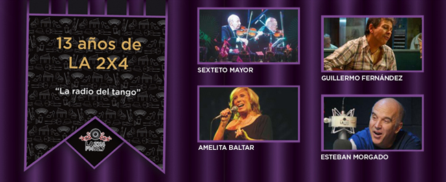 El martes 1° de octubre a las 20.30 h La 2x4, la radio del tango de la Ciudad de Buenos Aires, festeja su cumpleaños número 13 y lo celebra a lo grande en el Teatro Maipo.