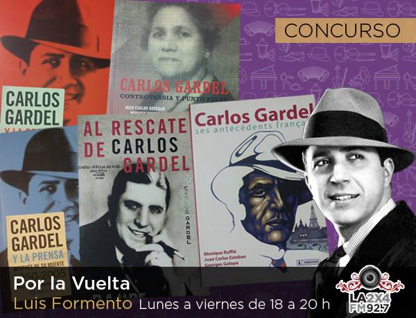 En La 2x4 FM 92.7, esta semana el juego para oyentes #TangoDelivery se realiza con obras de Carlos Gardel y el miércoles 24, durante un programa especial de Por la Vuelta, Luis Formento sortea entre los participantes 5 libros sobre la vida y obra del Zorzal. / Escuchá el programa y participá 4374-5748 ó 4371-8697 porlavuelta2x4@gmail.com