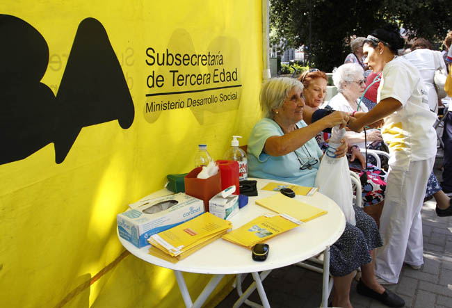 En las postas de tercera edad del Ministerio de Desarrollo Social los adultos mayores pueden hidratarse, realizarse controles de salud y recibir información sobre qué comer y cómo vestirse para evitar el golpe de calor.