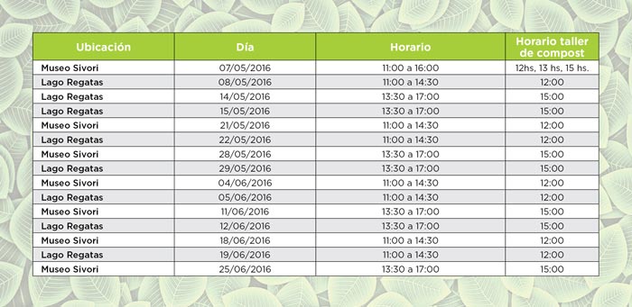 Los interesados en recibir una bolsita de compost y semillas, y asistir a los talleres deben concurrir los próximos fines de semana a los distintos puntos del parque asignados, según el siguiente cronograma: