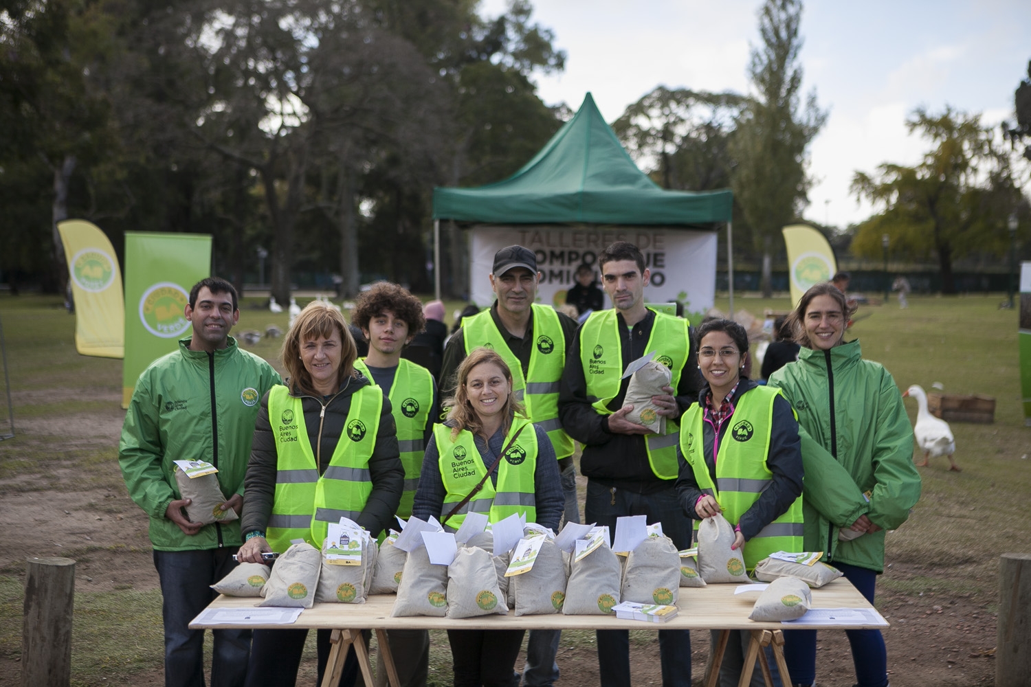 El material se obtuvo con los restos de poda (pasto, hojas y flores) del parque. Una parte se utiliza dentro del mismo predio para fertilizar el suelo del lugar. El resto se regala a los asistentes. El primer fin de semana se repartieron más de 1.500 bolsas de compost y semillas entre los que se acercaron al stand itinerante.
