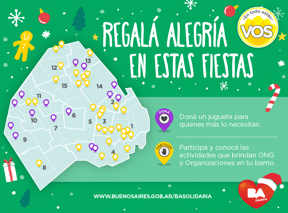 En diciembre la Ciudad celebra Navidad con múltiples actividades de las que participan organizaciones barriales y ONG. Se realizan diversas actividades para que grandes y chicos puedan festejarlo con una sonrisa. La Ciudad invita a acompañar las iniciativas que se van a llevar a cabo y a sumar una cuota solidaria en esta Navidad.