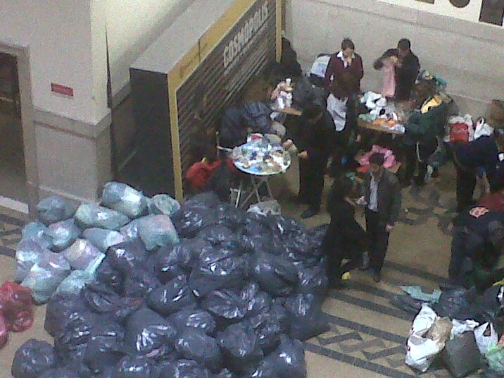 El martes por la mañana cientos de jóvenes se acercaron a la Casa de la Cultura para recibir entradas gratuitas para la Semana de la Cultura y Turismo, muchos de los cuales, para el espectáculo de Fuerza Bruta retiraron dos entradas por persona a cambio de una donación de ropa de abrigo, calzado y/o frazadas para la Campaña de Invierno de BA Solidaria.