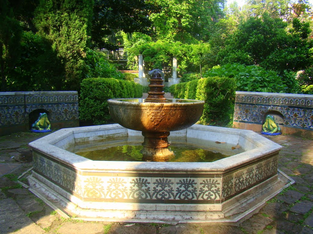 Tres ventanas de reja, abiertas, permiten ver el jardín desde el exterior. Único en su tipo en Sudamérica, ha sido diseñado según la tradición hispano-islámica, como un lugar para la meditación. Es un muestrario de ideas, símbolos y tradiciones que se remontan a la Edad Media. Resulta difícil encontrar uno de tan buen gusto y bien ornamentado, incluso, en España.