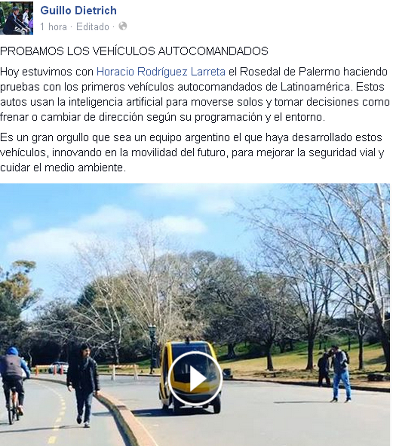 Así probamos con @horaciorlarreta los autocomandados que fueron desarrollados en Argentina, únicos en América Latina. pic.twitter.com/dQW1sfgait