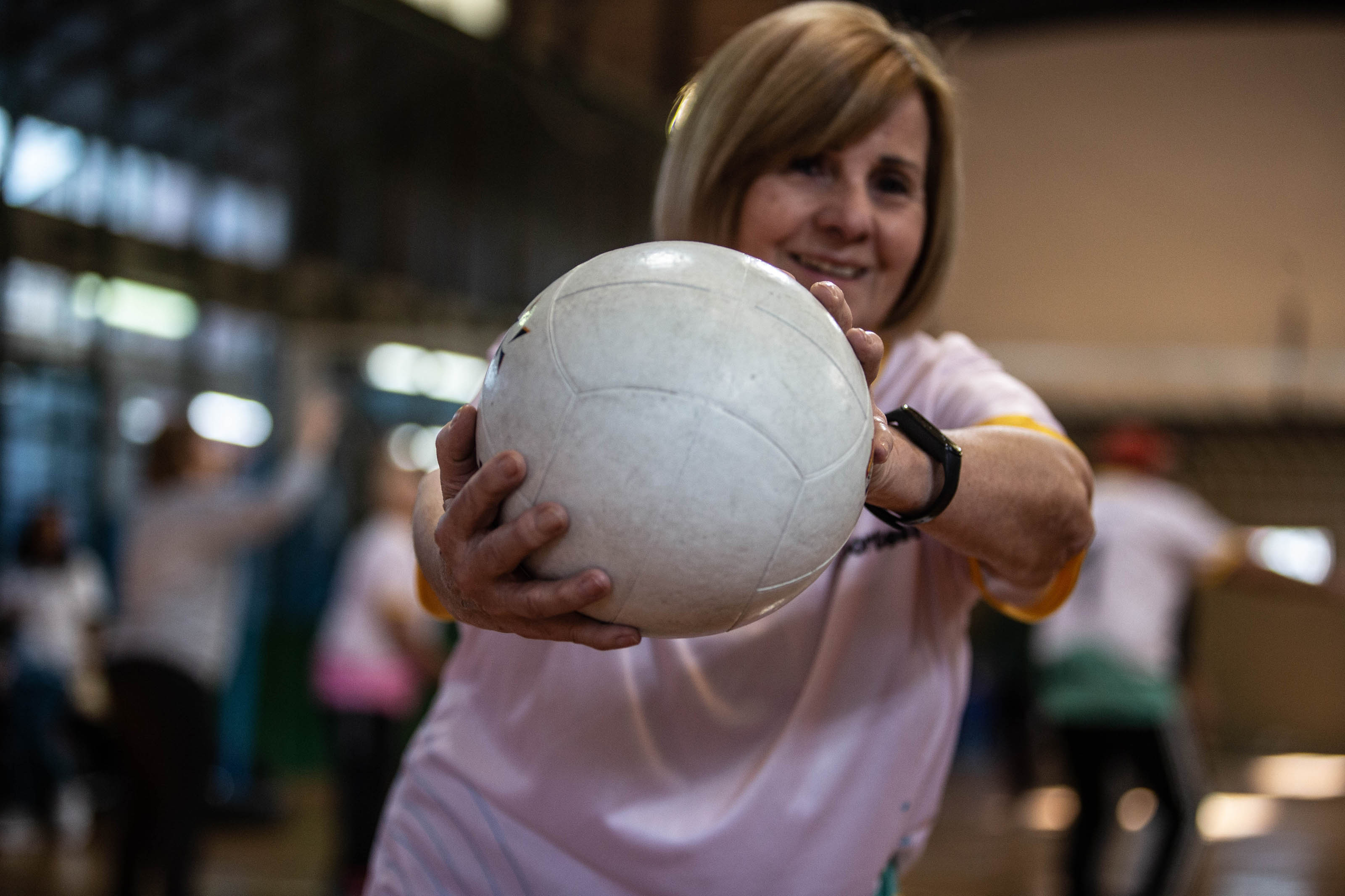 A unos pocos metros, sentada al costado de la cancha de parqué del Polideportivo Pomar, en Floresta, Marta Consentino espera su turno para jugar. Llegó hasta ahí después de un viaje de una hora en colectivo desde Coghlan. Repite esa rutina todos los miércoles y viernes. A sus 81 años, explica que disfruta ir a entrenar y lo toma como un paseo. “Me olvido del mundo, de los problemas. Acá me siento bien, me siento joven”, resume.