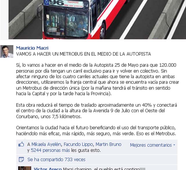 “Es otra obra muy importante que está en línea con el impacto positivo que produjo el Metrobus en la movilidad de la Ciudad y que siempre tiene como objetivo principal darle prioridad a la gente que usa todos los días el transporte público”, dijo Macri al hacer el anuncio.